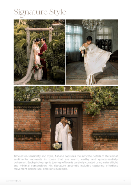 Timeless in sensibility and style, Ashane captures the intricate details of life’s most sentimental moments in tones that are warm, earthy and quintessentially bohemian. Each photographic journey of love is carefully curated using natural light and minimal composition. His signature aesthetic includes capturing effortless movement and natural emotions in people.